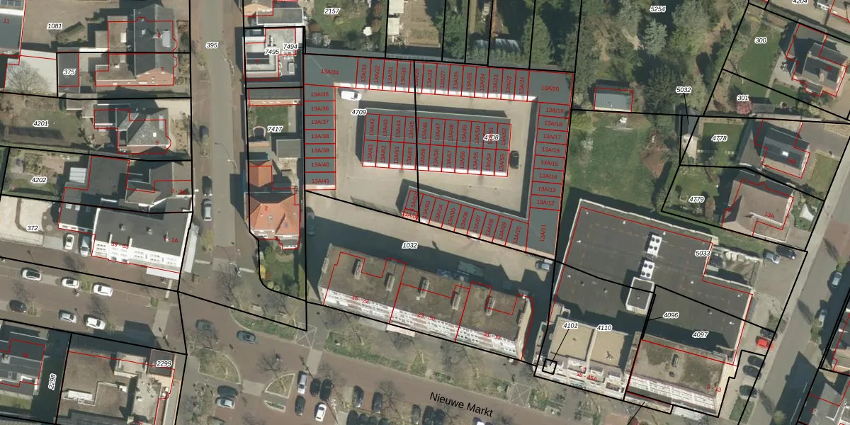 Nieuwe Markt 13-A-03 is gelegen op kadastraal perceel ECH00K4708. Deze kadastrale aanduiding is uniek en wordt gebruikt door het Kadaster om eigendomsrechten en andere zakelijke rechten vast te leggen. Het perceel maakt onderdeel uit van de kadastrale gemeente Echt.