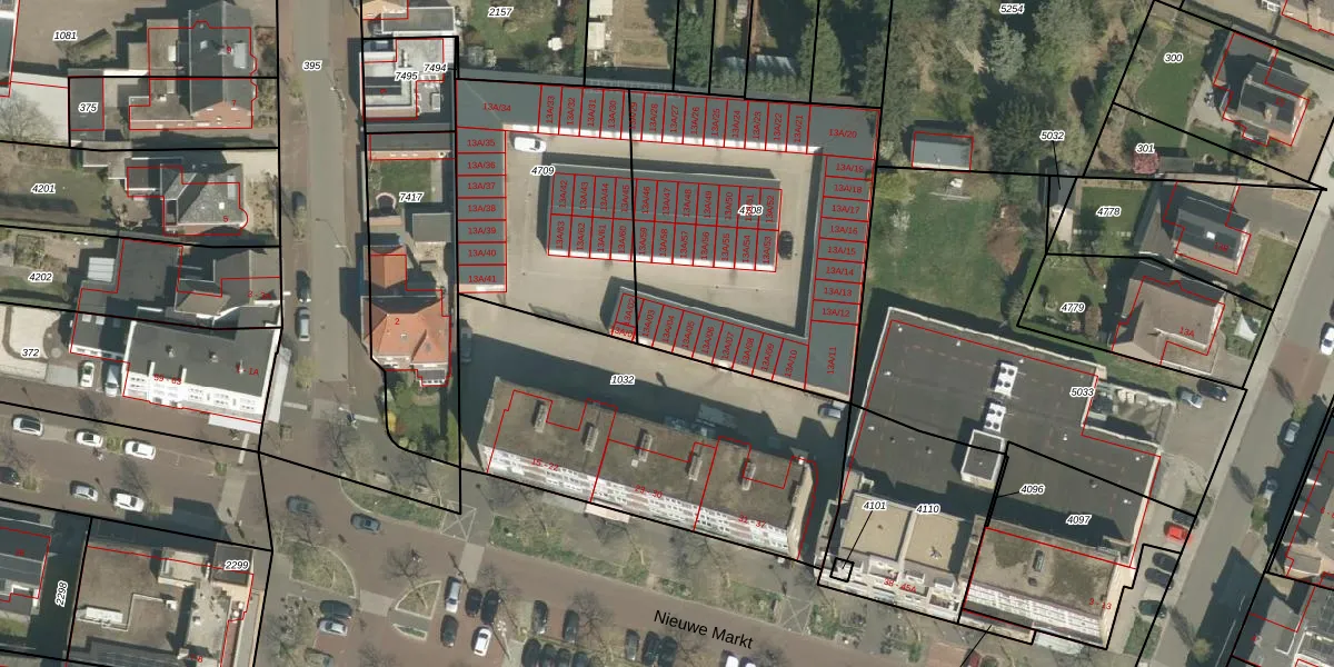 Nieuwe Markt 13-A-04 is gelegen op kadastraal perceel ECH00K4708. Deze kadastrale aanduiding is uniek en wordt gebruikt door het Kadaster om eigendomsrechten en andere zakelijke rechten vast te leggen. Het perceel maakt onderdeel uit van de kadastrale gemeente Echt.