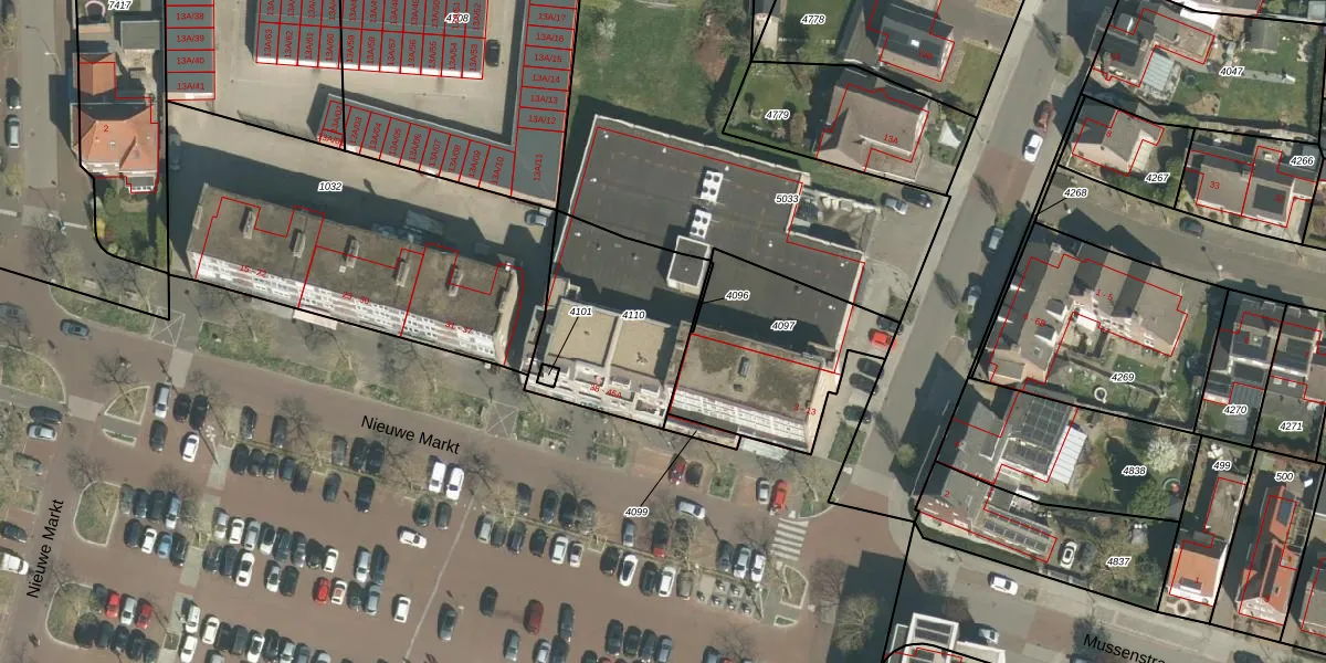 Nieuwe Markt 43 is gelegen op kadastraal perceel ECH00K4110. Deze kadastrale aanduiding is uniek en wordt gebruikt door het Kadaster om eigendomsrechten en andere zakelijke rechten vast te leggen. Het perceel maakt onderdeel uit van de kadastrale gemeente Echt.