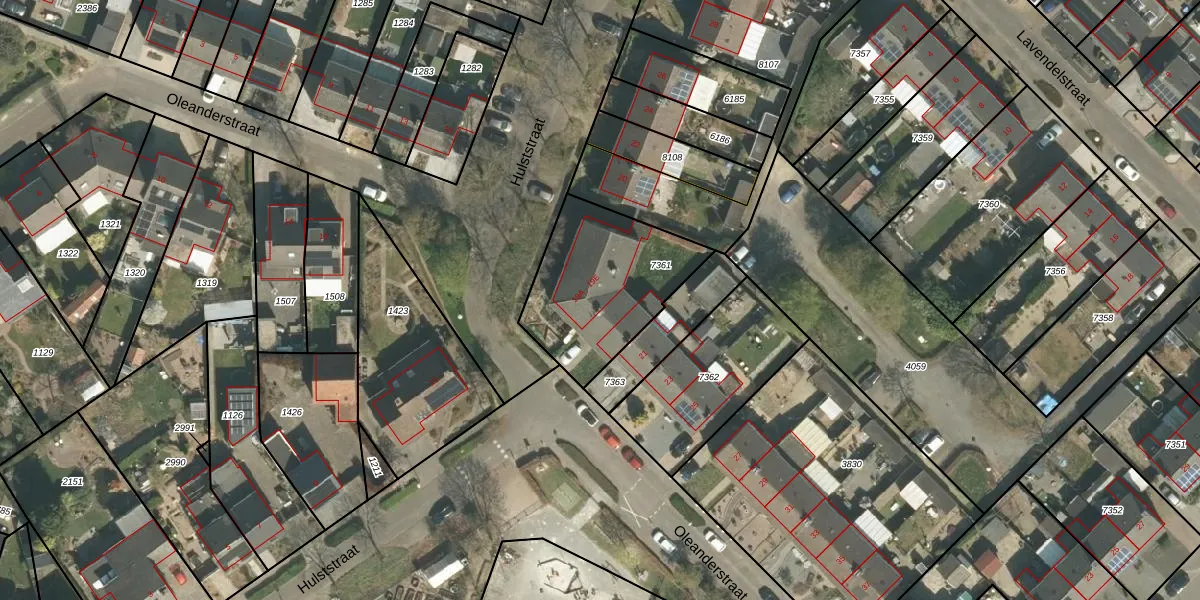 Het perceel waarop Oleanderstraat 19-D staat heeft een oppervlakte van 554 m². Dit is een groot perceel. De perceeloppervlakte wordt geregistreerd door het Kadaster. Gedetailleerde informatie over de maten van dit perceel kunt u vinden in het rapport Kadastrale kaart met maatvoering van Oleanderstraat 19-D.
