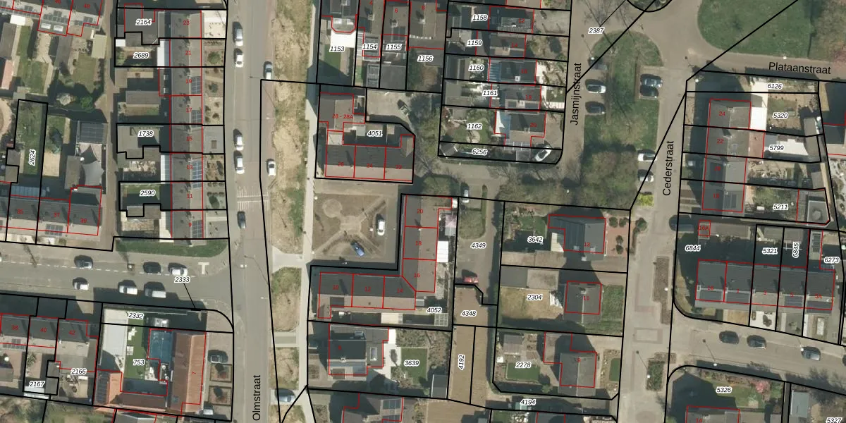 Het perceel waarop Olmstraat 20 staat heeft een oppervlakte van 690 m². Dit is een groot perceel. De perceeloppervlakte wordt geregistreerd door het Kadaster. Gedetailleerde informatie over de maten van dit perceel kunt u vinden in het rapport Kadastrale kaart met maatvoering van Olmstraat 20.