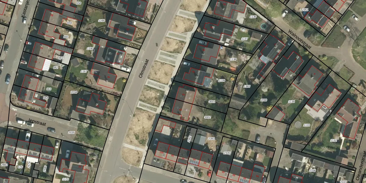 Het perceel waarop Olmstraat 44 staat heeft een oppervlakte van 315 m². Dit is een groot perceel. De perceeloppervlakte wordt geregistreerd door het Kadaster. Gedetailleerde informatie over de maten van dit perceel kunt u vinden in het rapport Kadastrale kaart met maatvoering van Olmstraat 44.