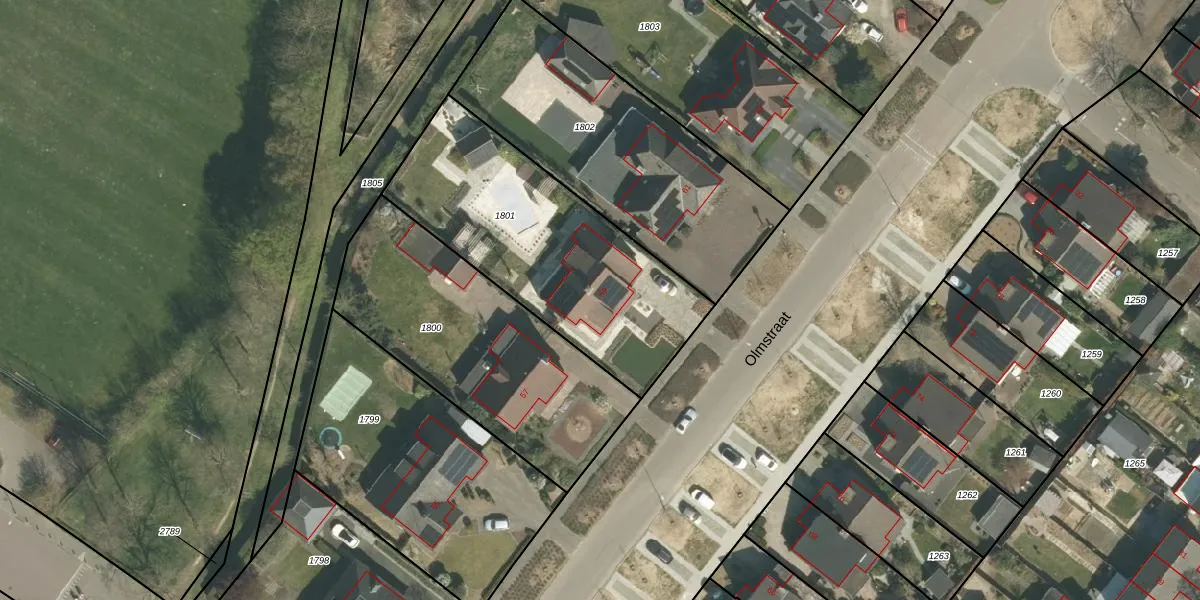 Olmstraat 59 is gelegen op kadastraal perceel ECH00M1801. Deze kadastrale aanduiding is uniek en wordt gebruikt door het Kadaster om eigendomsrechten en andere zakelijke rechten vast te leggen. Het perceel maakt onderdeel uit van de kadastrale gemeente Echt.