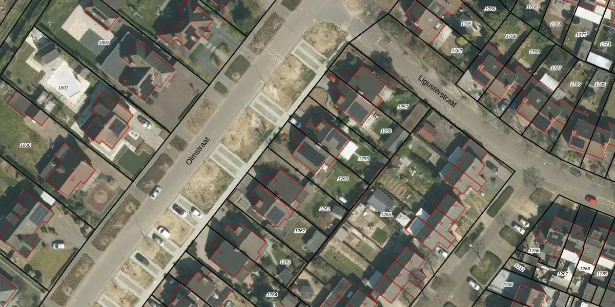 Het perceel waarop Olmstraat 76 staat heeft een oppervlakte van 365 m². Dit is een groot perceel. De perceeloppervlakte wordt geregistreerd door het Kadaster. Gedetailleerde informatie over de maten van dit perceel kunt u vinden in het rapport Kadastrale kaart met maatvoering van Olmstraat 76.