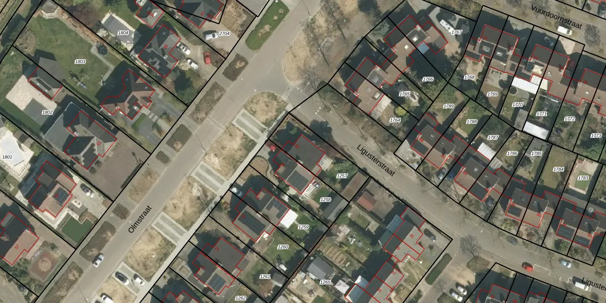 Het perceel waarop Olmstraat 82 staat heeft een oppervlakte van 365 m². Dit is een groot perceel. De perceeloppervlakte wordt geregistreerd door het Kadaster. Gedetailleerde informatie over de maten van dit perceel kunt u vinden in het rapport Kadastrale kaart met maatvoering van Olmstraat 82.