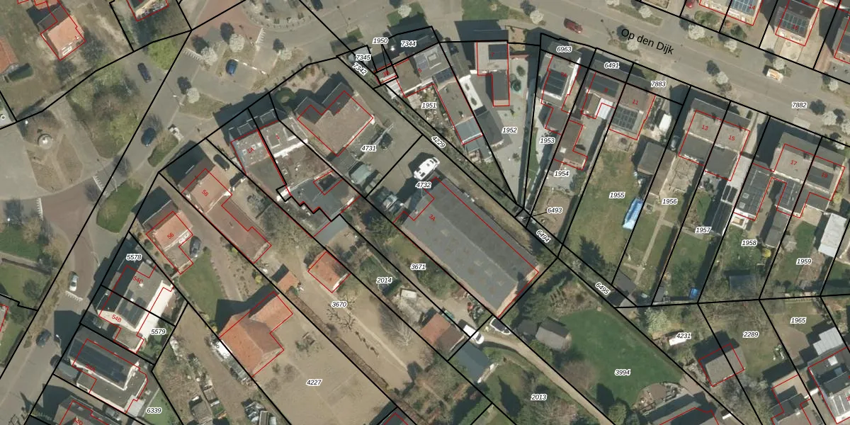 Het perceel waarop Op den Dijk 3-A staat heeft een oppervlakte van 870 m². Dit is een groot perceel. De perceeloppervlakte wordt geregistreerd door het Kadaster. Gedetailleerde informatie over de maten van dit perceel kunt u vinden in het rapport Kadastrale kaart met maatvoering van Op den Dijk 3-A.