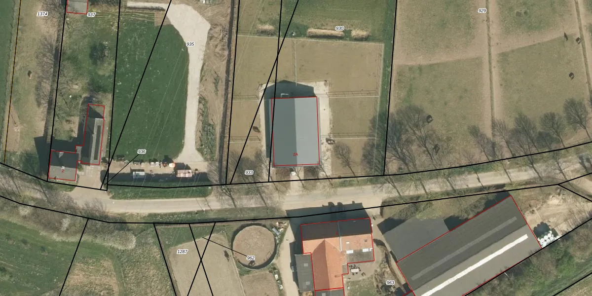 Het perceel waarop Ophoven 2-A staat heeft een oppervlakte van 3540 m². Dit is een zeer groot perceel. De perceeloppervlakte wordt geregistreerd door het Kadaster. Gedetailleerde informatie over de maten van dit perceel kunt u vinden in het rapport Kadastrale kaart met maatvoering van Ophoven 2-A.