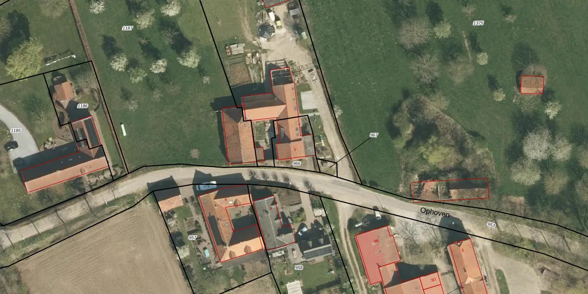 Ophoven 5 is gelegen op kadastraal perceel ECH00AC966. Deze kadastrale aanduiding is uniek en wordt gebruikt door het Kadaster om eigendomsrechten en andere zakelijke rechten vast te leggen. Het perceel maakt onderdeel uit van de kadastrale gemeente Echt.
