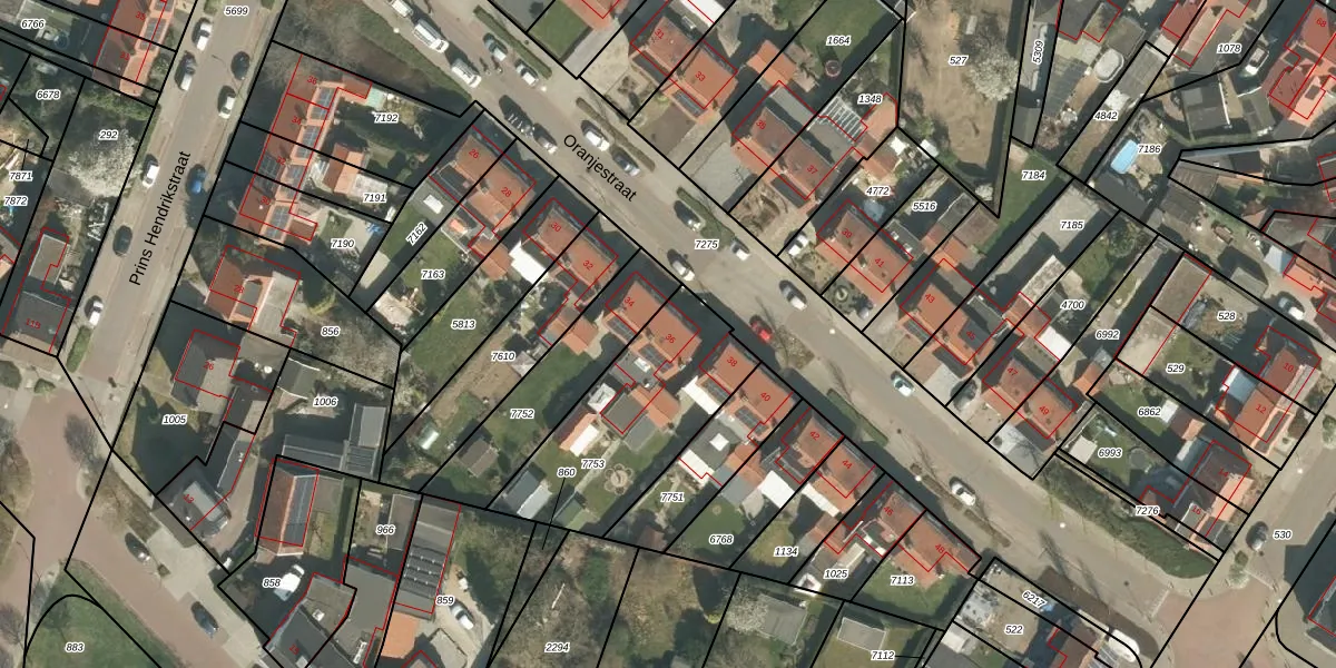 Het perceel waarop Oranjestraat 36 staat heeft een oppervlakte van 658 m². Dit is een groot perceel. De perceeloppervlakte wordt geregistreerd door het Kadaster. Gedetailleerde informatie over de maten van dit perceel kunt u vinden in het rapport Kadastrale kaart met maatvoering van Oranjestraat 36.