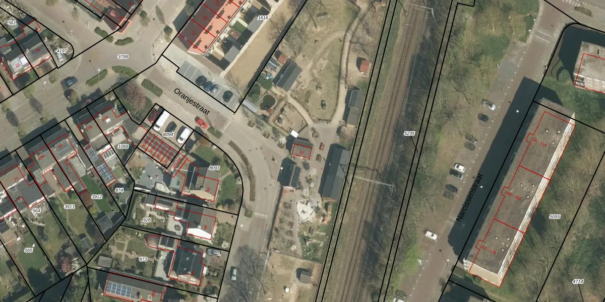 Oranjestraat 67 is gelegen op kadastraal perceel ECH00K3800. Deze kadastrale aanduiding is uniek en wordt gebruikt door het Kadaster om eigendomsrechten en andere zakelijke rechten vast te leggen. Het perceel maakt onderdeel uit van de kadastrale gemeente Echt.