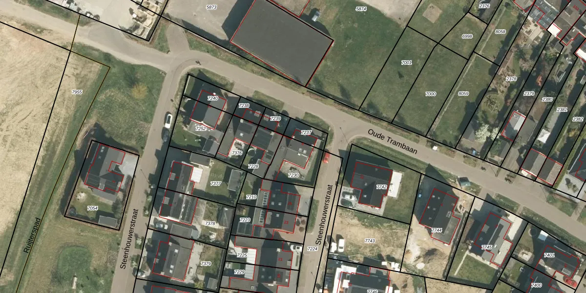 Oude Trambaan 6 is gelegen op kadastraal perceel ECH00K7230. Deze kadastrale aanduiding is uniek en wordt gebruikt door het Kadaster om eigendomsrechten en andere zakelijke rechten vast te leggen. Het perceel maakt onderdeel uit van de kadastrale gemeente Echt.