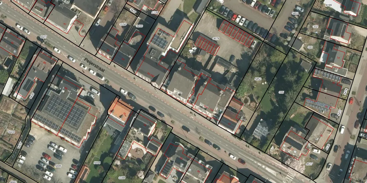 Het perceel waarop Peijerstraat 67-B staat heeft een oppervlakte van 1895 m². Dit is een zeer groot perceel. De perceeloppervlakte wordt geregistreerd door het Kadaster. Gedetailleerde informatie over de maten van dit perceel kunt u vinden in het rapport Kadastrale kaart met maatvoering van Peijerstraat 67-B.