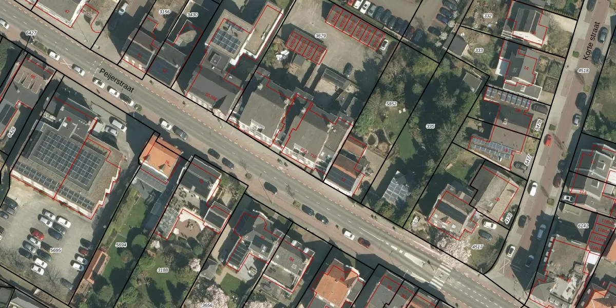 Het perceel waarop Peijerstraat 69-B staat heeft een oppervlakte van 1895 m². Dit is een zeer groot perceel. De perceeloppervlakte wordt geregistreerd door het Kadaster. Gedetailleerde informatie over de maten van dit perceel kunt u vinden in het rapport Kadastrale kaart met maatvoering van Peijerstraat 69-B.