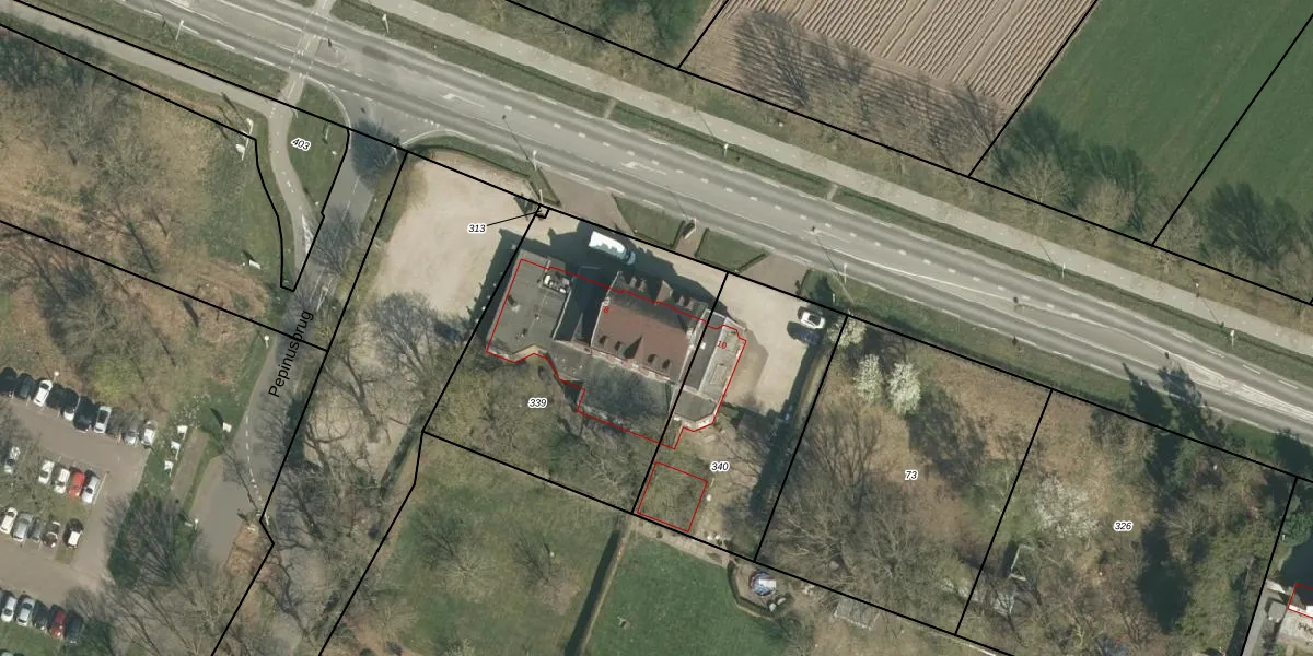 Het perceel waarop Pepinusbrug 8 staat heeft een oppervlakte van 1285 m². Dit is een zeer groot perceel. De perceeloppervlakte wordt geregistreerd door het Kadaster. Gedetailleerde informatie over de maten van dit perceel kunt u vinden in het rapport Kadastrale kaart met maatvoering van Pepinusbrug 8.