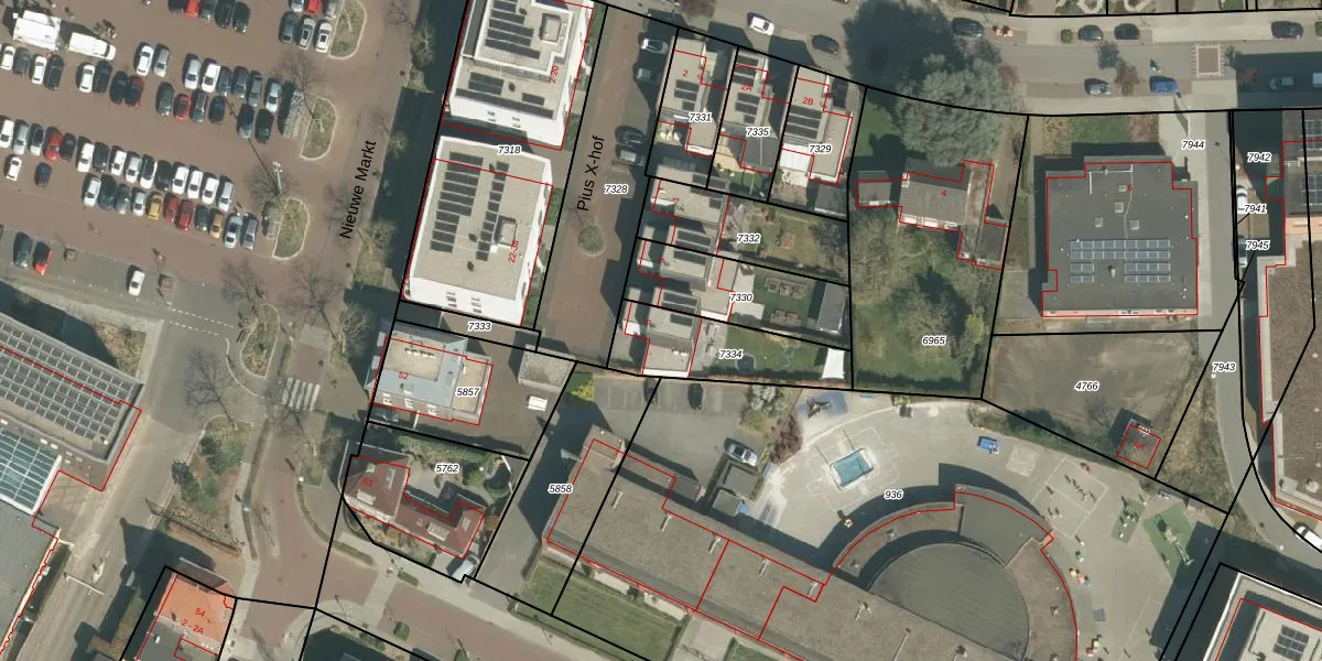 Pius X-hof 5 is gelegen op kadastraal perceel ECH00K7334. Deze kadastrale aanduiding is uniek en wordt gebruikt door het Kadaster om eigendomsrechten en andere zakelijke rechten vast te leggen. Het perceel maakt onderdeel uit van de kadastrale gemeente Echt.