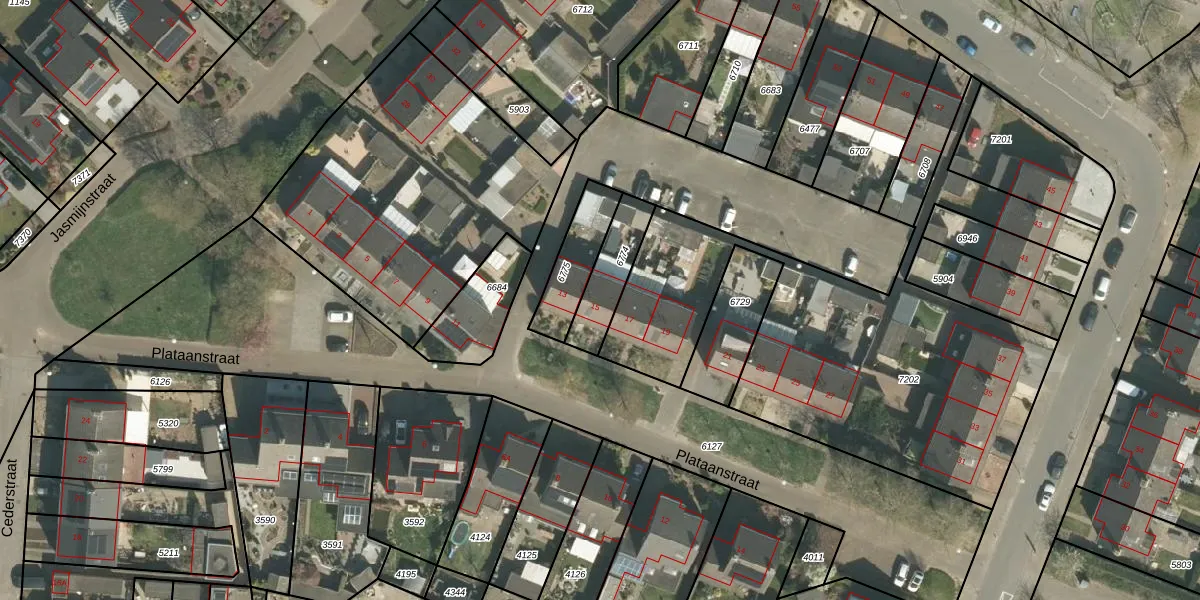 Plataanstraat 15 is gelegen op kadastraal perceel ECH00K6774. Deze kadastrale aanduiding is uniek en wordt gebruikt door het Kadaster om eigendomsrechten en andere zakelijke rechten vast te leggen. Het perceel maakt onderdeel uit van de kadastrale gemeente Echt.