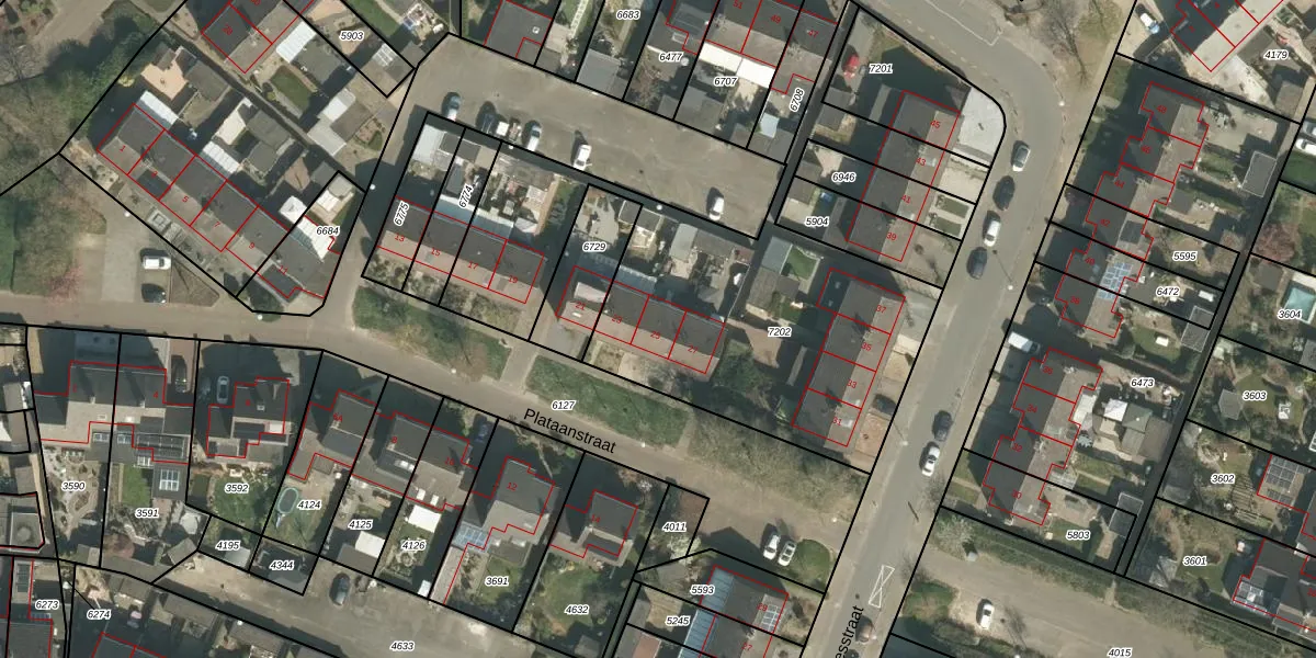 Plataanstraat 25 is gelegen op kadastraal perceel ECH00K7202. Deze kadastrale aanduiding is uniek en wordt gebruikt door het Kadaster om eigendomsrechten en andere zakelijke rechten vast te leggen. Het perceel maakt onderdeel uit van de kadastrale gemeente Echt.