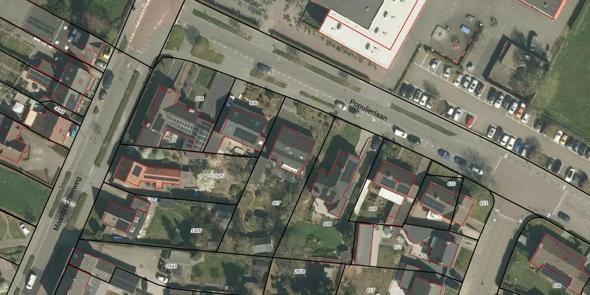 Populierlaan 20 is gelegen op kadastraal perceel ECH00M607. Deze kadastrale aanduiding is uniek en wordt gebruikt door het Kadaster om eigendomsrechten en andere zakelijke rechten vast te leggen. Het perceel maakt onderdeel uit van de kadastrale gemeente Echt.