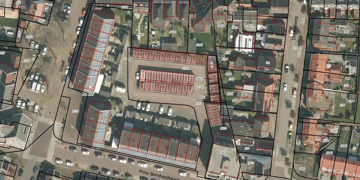 Prins Bernhardstraat 23-A-38 is gelegen op kadastraal perceel ECH00K6752. Deze kadastrale aanduiding is uniek en wordt gebruikt door het Kadaster om eigendomsrechten en andere zakelijke rechten vast te leggen. Het perceel maakt onderdeel uit van de kadastrale gemeente Echt.
