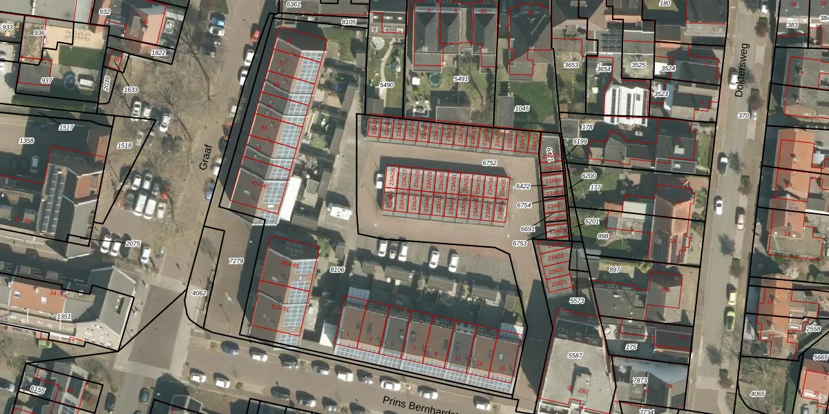 Prins Bernhardstraat 23-A-43 is gelegen op kadastraal perceel ECH00K6752. Deze kadastrale aanduiding is uniek en wordt gebruikt door het Kadaster om eigendomsrechten en andere zakelijke rechten vast te leggen. Het perceel maakt onderdeel uit van de kadastrale gemeente Echt.