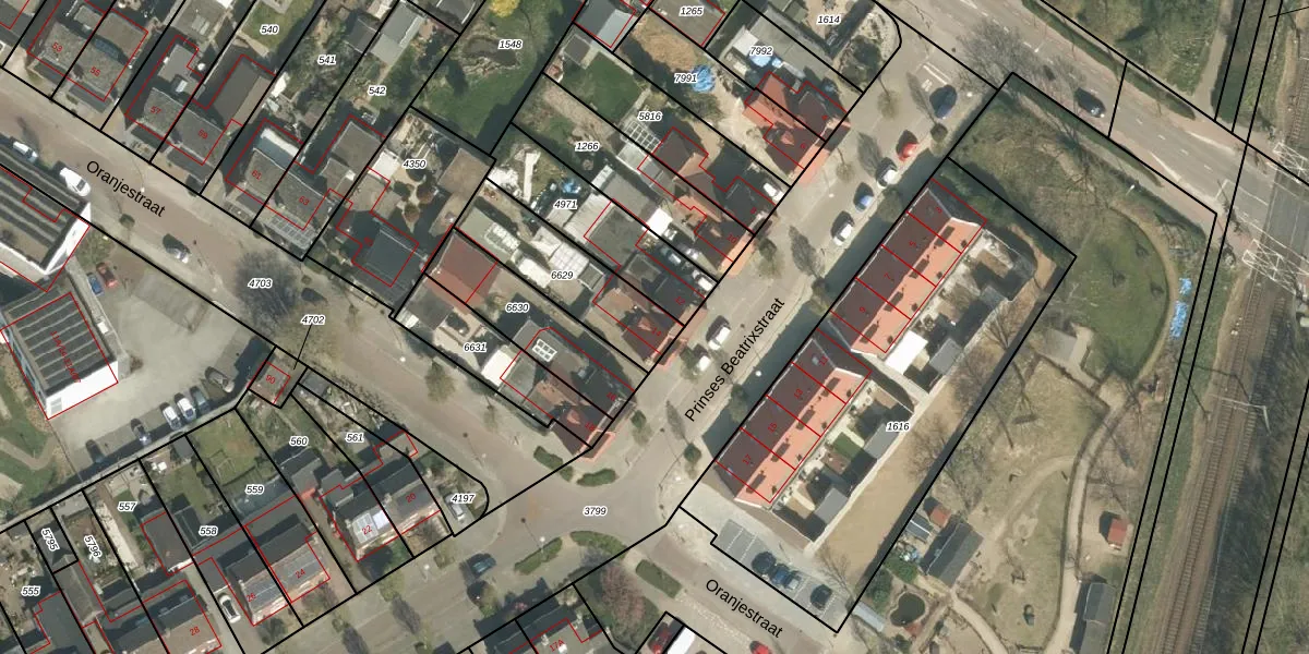 Het perceel waarop Prinses Beatrixstraat 14 staat heeft een oppervlakte van 349 m². Dit is een groot perceel. De perceeloppervlakte wordt geregistreerd door het Kadaster. Gedetailleerde informatie over de maten van dit perceel kunt u vinden in het rapport Kadastrale kaart met maatvoering van Prinses Beatrixstraat 14.
