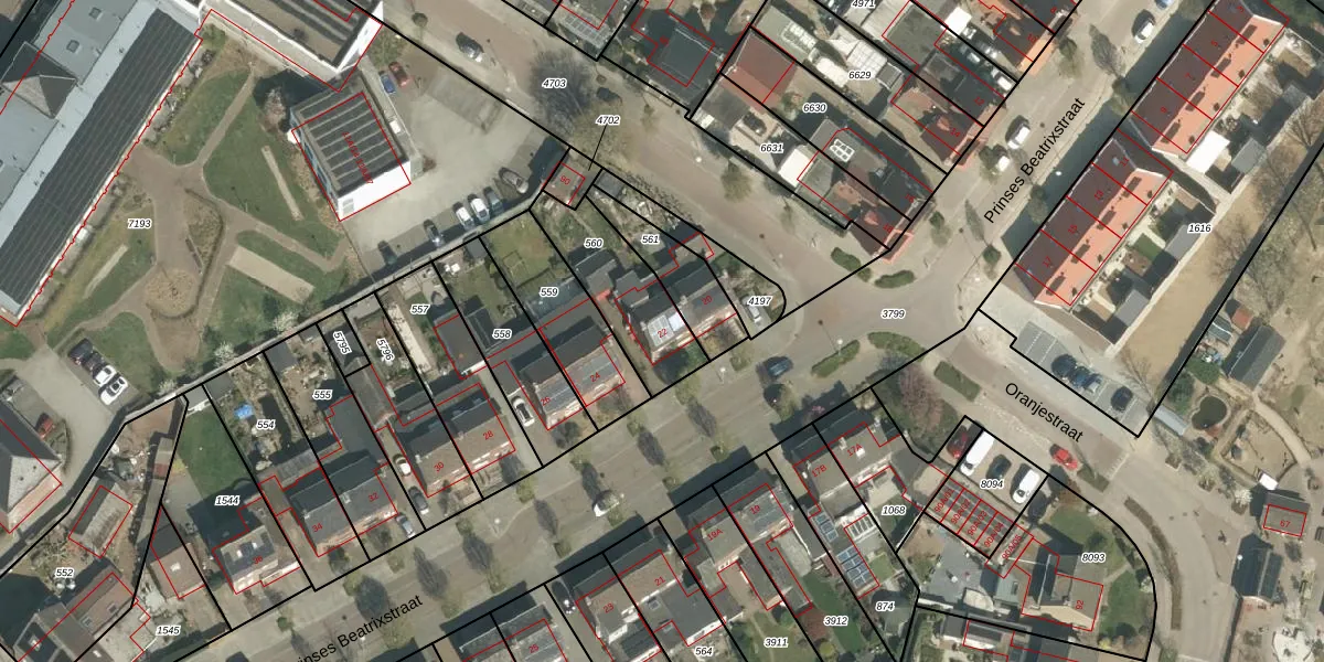 Gebruik de zoekbalk of klik op een perceel voor informatie over de adressen binnen dit perceel.