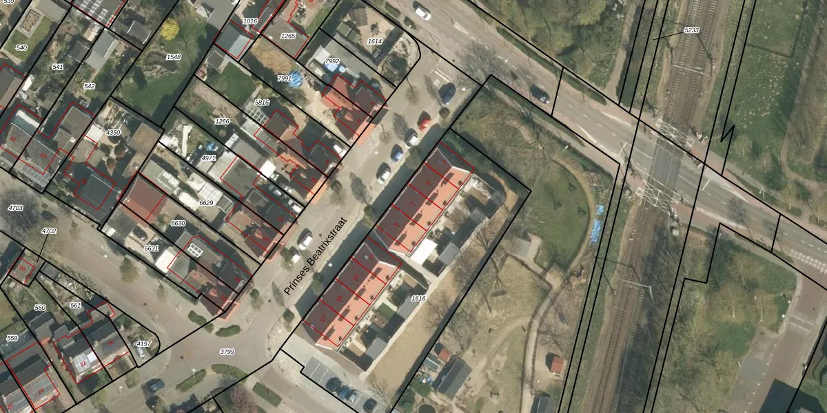 Het perceel waarop Prinses Beatrixstraat 7 staat heeft een oppervlakte van 1895 m². Dit is een zeer groot perceel. De perceeloppervlakte wordt geregistreerd door het Kadaster. Gedetailleerde informatie over de maten van dit perceel kunt u vinden in het rapport Kadastrale kaart met maatvoering van Prinses Beatrixstraat 7.
