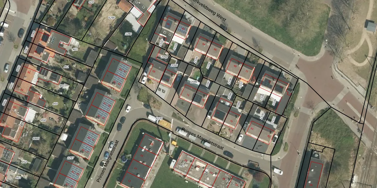 Gebruik de zoekbalk of klik op een perceel voor informatie over de adressen binnen dit perceel.