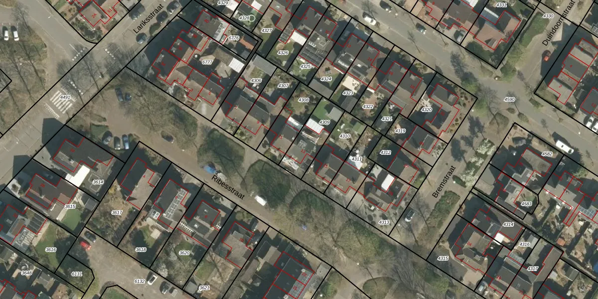 Het perceel waarop Ribesstraat 13 staat heeft een oppervlakte van 245 m². Dit is een middelgroot perceel. De perceeloppervlakte wordt geregistreerd door het Kadaster. Gedetailleerde informatie over de maten van dit perceel kunt u vinden in het rapport Kadastrale kaart met maatvoering van Ribesstraat 13.