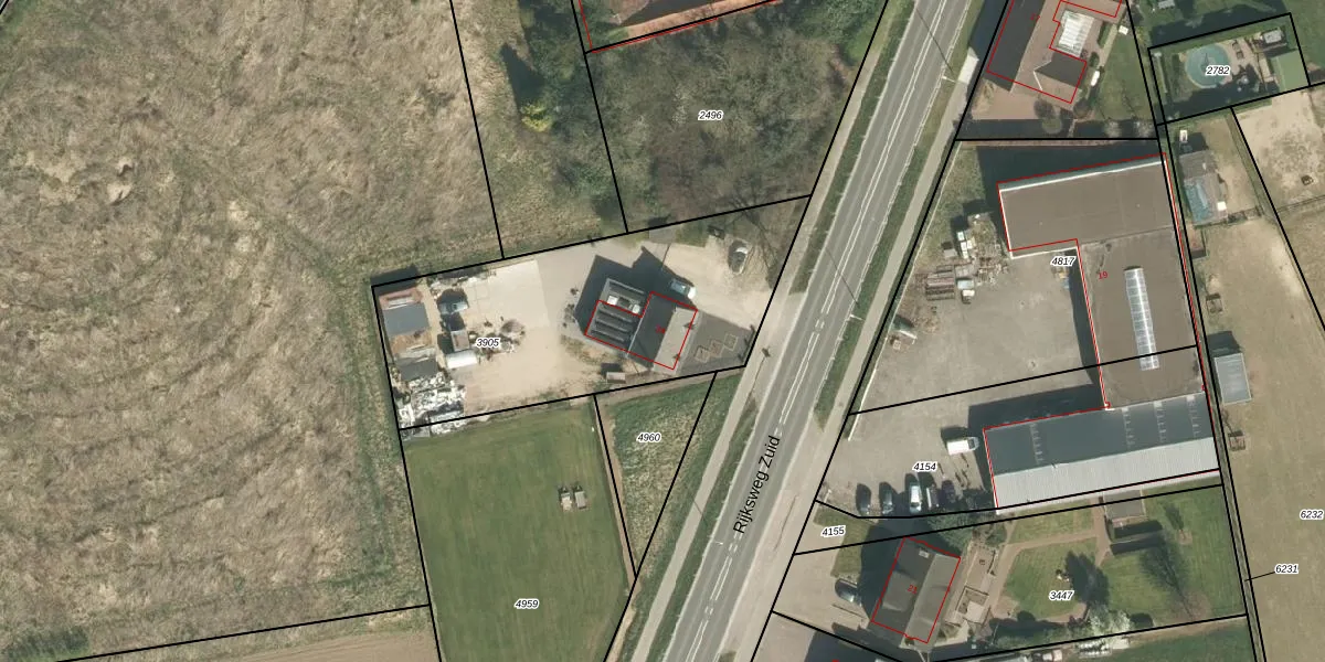 Rijksweg Zuid 34 is gelegen op kadastraal perceel ECH00K3905. Deze kadastrale aanduiding is uniek en wordt gebruikt door het Kadaster om eigendomsrechten en andere zakelijke rechten vast te leggen. Het perceel maakt onderdeel uit van de kadastrale gemeente Echt.