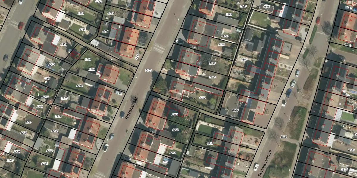 Het perceel waarop Rozenstraat 52 staat heeft een oppervlakte van 470 m². Dit is een groot perceel. De perceeloppervlakte wordt geregistreerd door het Kadaster. Gedetailleerde informatie over de maten van dit perceel kunt u vinden in het rapport Kadastrale kaart met maatvoering van Rozenstraat 52.