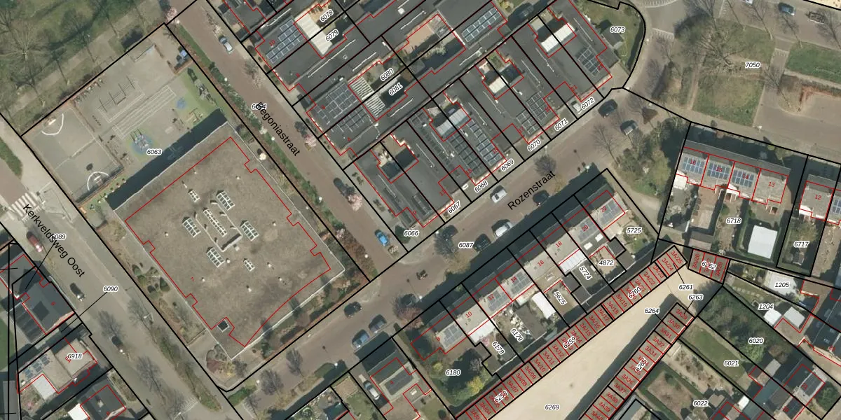 Rozenstraat 9 is gelegen op kadastraal perceel ECH00K6066. Deze kadastrale aanduiding is uniek en wordt gebruikt door het Kadaster om eigendomsrechten en andere zakelijke rechten vast te leggen. Het perceel maakt onderdeel uit van de kadastrale gemeente Echt.