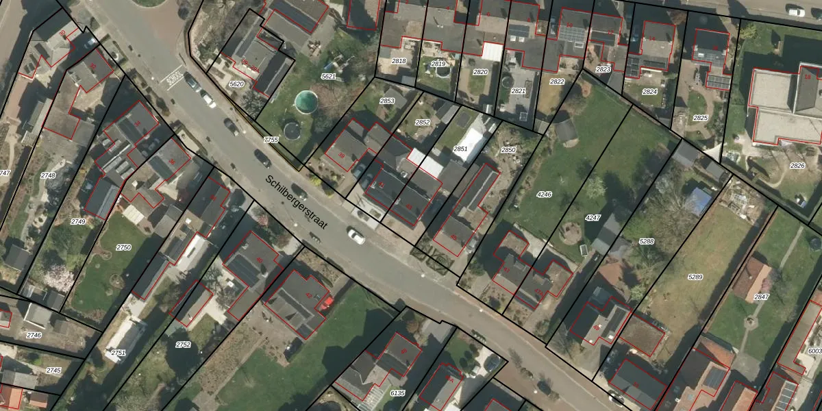 Schilbergerstraat 43 is gelegen op kadastraal perceel ECH00K2851. Deze kadastrale aanduiding is uniek en wordt gebruikt door het Kadaster om eigendomsrechten en andere zakelijke rechten vast te leggen. Het perceel maakt onderdeel uit van de kadastrale gemeente Echt.