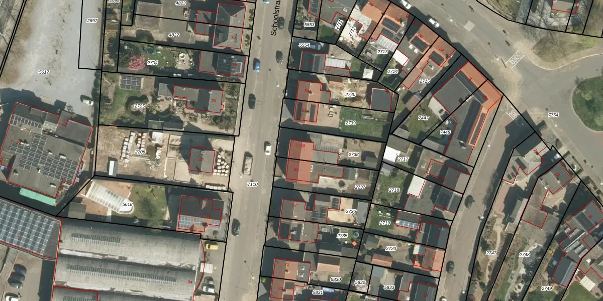 Schoolstraat 63 is gelegen op kadastraal perceel ECH00K2738. Deze kadastrale aanduiding is uniek en wordt gebruikt door het Kadaster om eigendomsrechten en andere zakelijke rechten vast te leggen. Het perceel maakt onderdeel uit van de kadastrale gemeente Echt.