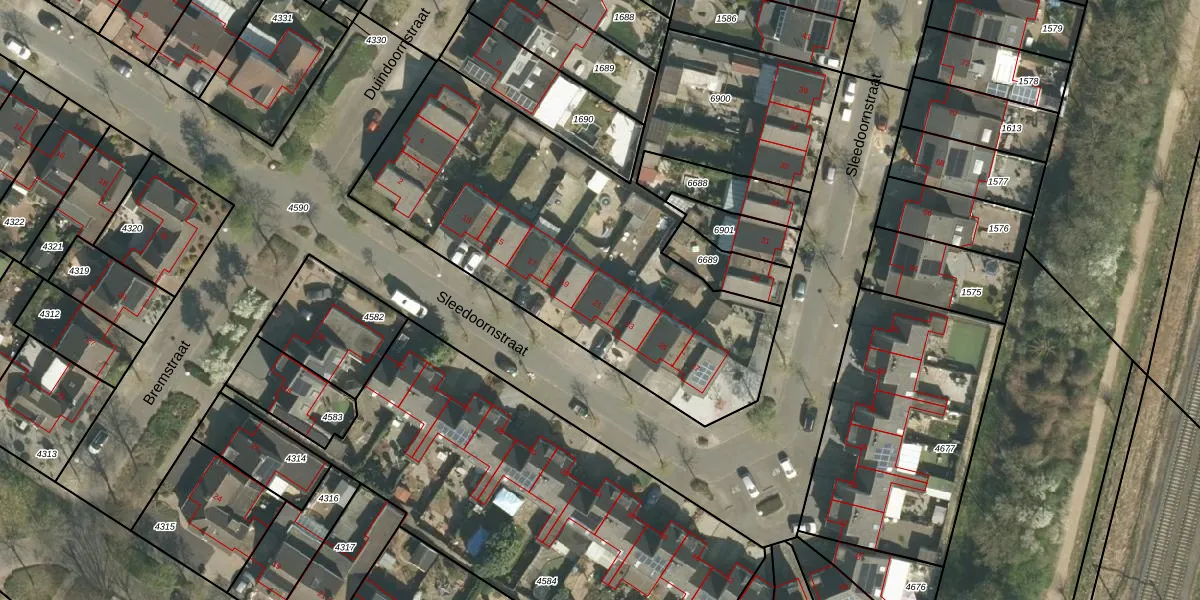 Het perceel waarop Sleedoornstraat 21 staat heeft een oppervlakte van 2515 m². Dit is een zeer groot perceel. De perceeloppervlakte wordt geregistreerd door het Kadaster. Gedetailleerde informatie over de maten van dit perceel kunt u vinden in het rapport Kadastrale kaart met maatvoering van Sleedoornstraat 21.