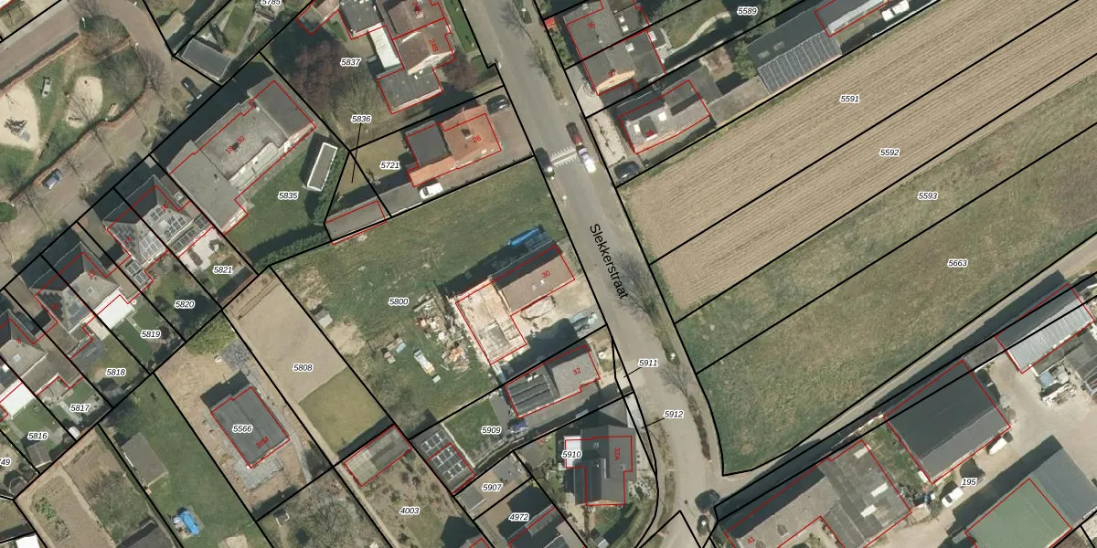 Slekkerstraat 30 is gelegen op kadastraal perceel ECH00G5800. Deze kadastrale aanduiding is uniek en wordt gebruikt door het Kadaster om eigendomsrechten en andere zakelijke rechten vast te leggen. Het perceel maakt onderdeel uit van de kadastrale gemeente Echt.