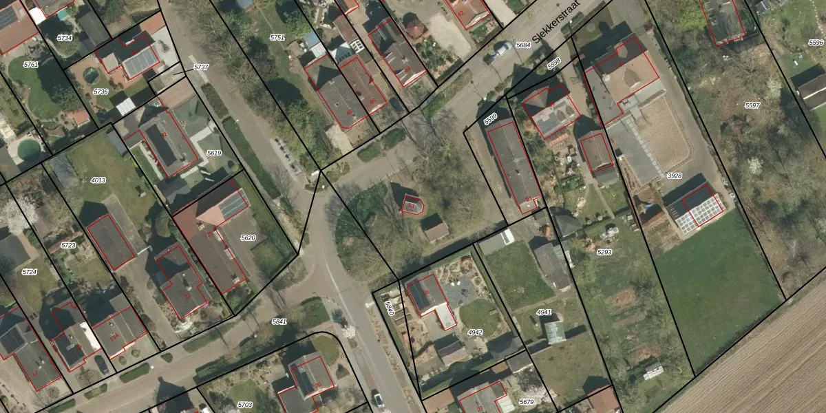 Slekkerstraat 53 is gelegen op kadastraal perceel ECH00G5684. Deze kadastrale aanduiding is uniek en wordt gebruikt door het Kadaster om eigendomsrechten en andere zakelijke rechten vast te leggen. Het perceel maakt onderdeel uit van de kadastrale gemeente Echt.