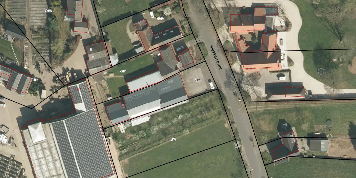 Slekkerstraat 6 is gelegen op kadastraal perceel ECH00AC418. Deze kadastrale aanduiding is uniek en wordt gebruikt door het Kadaster om eigendomsrechten en andere zakelijke rechten vast te leggen. Het perceel maakt onderdeel uit van de kadastrale gemeente Echt.