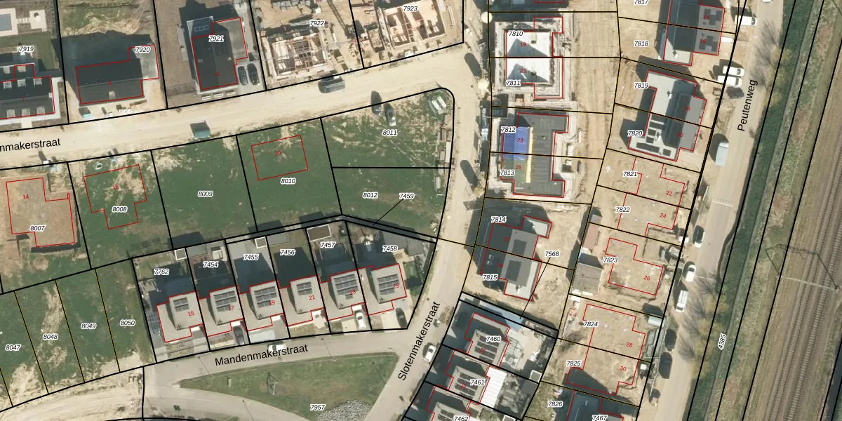 Het perceel waarop Slotenmakerstraat 24 staat heeft een oppervlakte van 357 m². Dit is een groot perceel. De perceeloppervlakte wordt geregistreerd door het Kadaster. Gedetailleerde informatie over de maten van dit perceel kunt u vinden in het rapport Kadastrale kaart met maatvoering van Slotenmakerstraat 24.