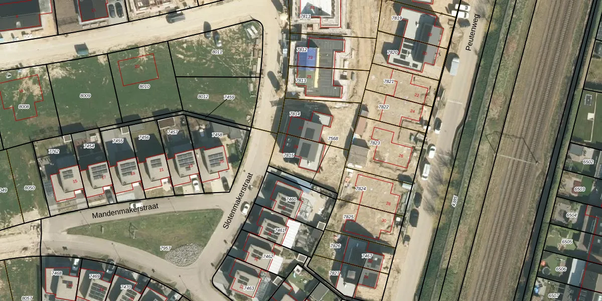 Het perceel waarop Slotenmakerstraat 29 staat heeft een oppervlakte van 323 m². Dit is een groot perceel. De perceeloppervlakte wordt geregistreerd door het Kadaster. Gedetailleerde informatie over de maten van dit perceel kunt u vinden in het rapport Kadastrale kaart met maatvoering van Slotenmakerstraat 29.