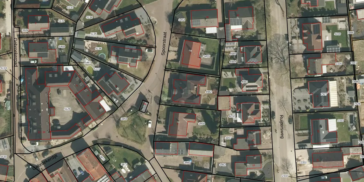 Het perceel waarop Spoorstraat 3 staat heeft een oppervlakte van 578 m². Dit is een groot perceel. De perceeloppervlakte wordt geregistreerd door het Kadaster. Gedetailleerde informatie over de maten van dit perceel kunt u vinden in het rapport Kadastrale kaart met maatvoering van Spoorstraat 3.