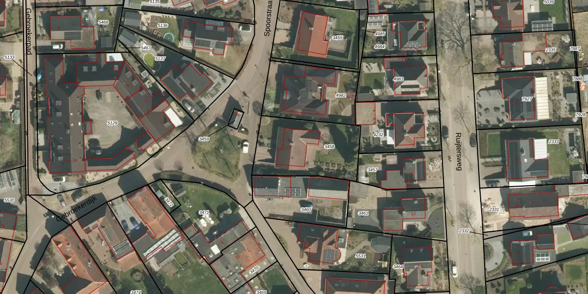 Spoorstraat 5 is gelegen op kadastraal perceel ECH00K3458. Deze kadastrale aanduiding is uniek en wordt gebruikt door het Kadaster om eigendomsrechten en andere zakelijke rechten vast te leggen. Het perceel maakt onderdeel uit van de kadastrale gemeente Echt.