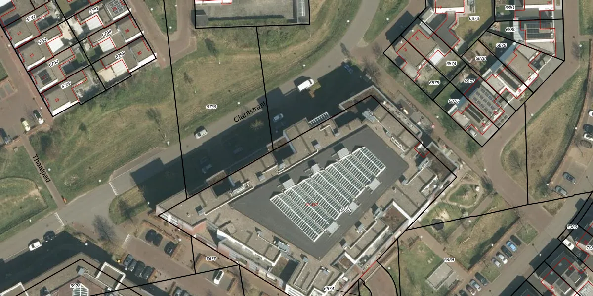 Het perceel waarop Thaalpad 121 staat heeft een oppervlakte van 3925 m². Dit is een zeer groot perceel. De perceeloppervlakte wordt geregistreerd door het Kadaster. Gedetailleerde informatie over de maten van dit perceel kunt u vinden in het rapport Kadastrale kaart met maatvoering van Thaalpad 121.