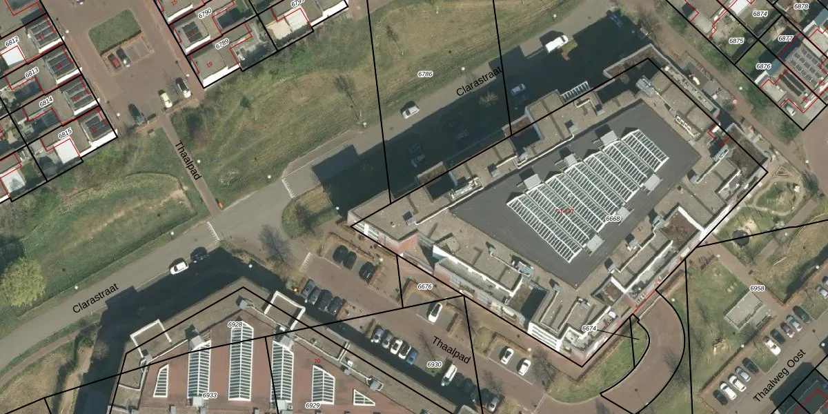 Het perceel waarop Thaalpad 23 staat heeft een oppervlakte van 3925 m². Dit is een zeer groot perceel. De perceeloppervlakte wordt geregistreerd door het Kadaster. Gedetailleerde informatie over de maten van dit perceel kunt u vinden in het rapport Kadastrale kaart met maatvoering van Thaalpad 23.