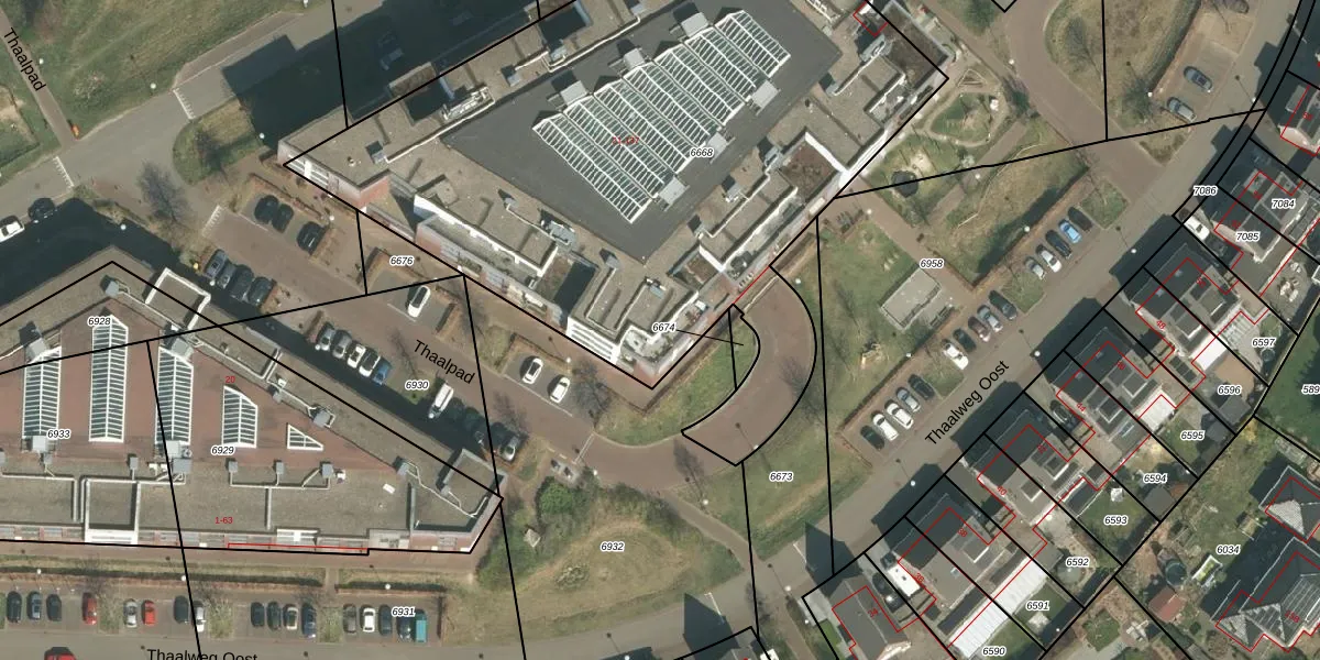 Het perceel waarop Thaalpad 61 staat heeft een oppervlakte van 3925 m². Dit is een zeer groot perceel. De perceeloppervlakte wordt geregistreerd door het Kadaster. Gedetailleerde informatie over de maten van dit perceel kunt u vinden in het rapport Kadastrale kaart met maatvoering van Thaalpad 61.
