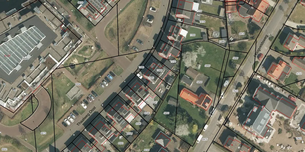 Het perceel waarop Thaalweg Oost 52 staat heeft een oppervlakte van 215 m². Dit is een middelgroot perceel. De perceeloppervlakte wordt geregistreerd door het Kadaster. Gedetailleerde informatie over de maten van dit perceel kunt u vinden in het rapport Kadastrale kaart met maatvoering van Thaalweg Oost 52.