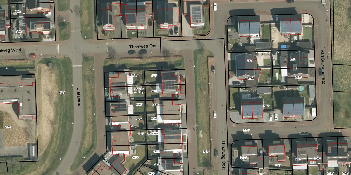 Thaalweg Oost 83 is gelegen op kadastraal perceel ECH00K6871. Deze kadastrale aanduiding is uniek en wordt gebruikt door het Kadaster om eigendomsrechten en andere zakelijke rechten vast te leggen. Het perceel maakt onderdeel uit van de kadastrale gemeente Echt.