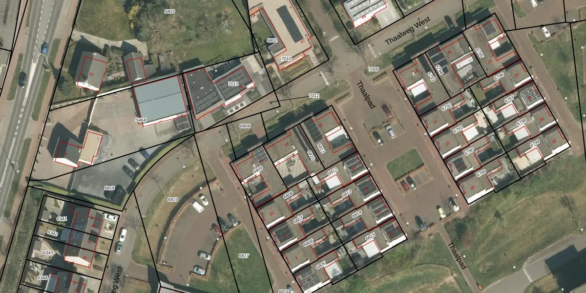 Thaalweg West 14 is gelegen op kadastraal perceel ECH00K6810. Deze kadastrale aanduiding is uniek en wordt gebruikt door het Kadaster om eigendomsrechten en andere zakelijke rechten vast te leggen. Het perceel maakt onderdeel uit van de kadastrale gemeente Echt.