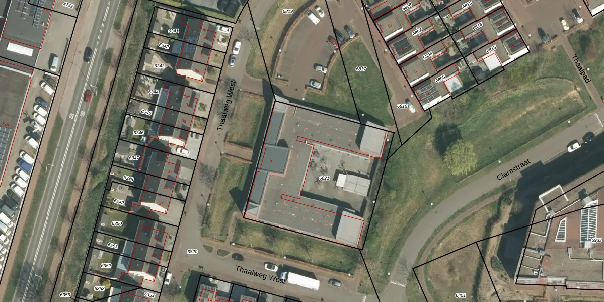 Thaalweg West 2-K-13 is gelegen op kadastraal perceel ECH00K6821. Deze kadastrale aanduiding is uniek en wordt gebruikt door het Kadaster om eigendomsrechten en andere zakelijke rechten vast te leggen. Het perceel maakt onderdeel uit van de kadastrale gemeente Echt.