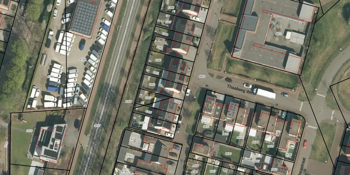 Thaalweg West 21 is gelegen op kadastraal perceel ECH00K6352. Deze kadastrale aanduiding is uniek en wordt gebruikt door het Kadaster om eigendomsrechten en andere zakelijke rechten vast te leggen. Het perceel maakt onderdeel uit van de kadastrale gemeente Echt.